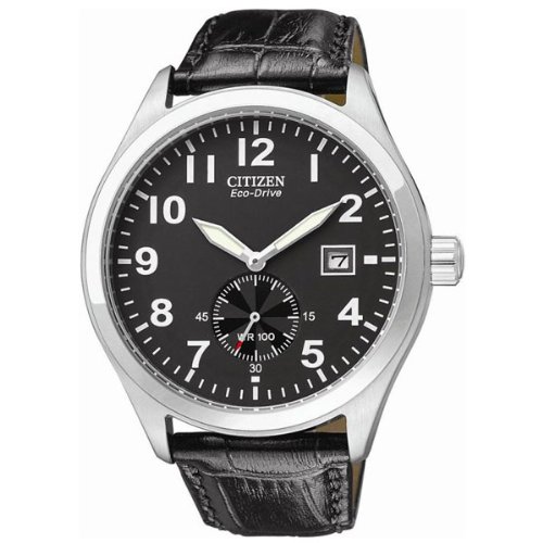 Our Price : $199.00 Citizen Men's BV1060-07E Eco Drive Strap Watch Strap on some power and durability with the Citizen Men's Eco Drive Strap Watch, featuring Eco Drive technology that replaces traditional battery power with fuel by light. This Japanese quartz movement watch comes equipped with large hour numerals, a sub-second dial, and a date window at the three o'clock position for added convenience. The stainless steel case features a black dial with silver-tone hands and white hour markers. Add luminous hands, 300-day power reserve when charged, and water resistance up to 330 feet (100 meters), and the Citizen delivers relaxed style with functionality.